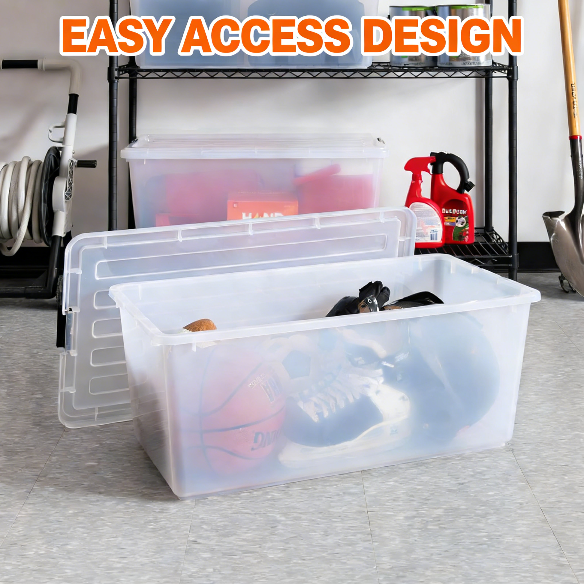 - Large Capacity: Available in 91QT & 144QT sizes for bulk item storage